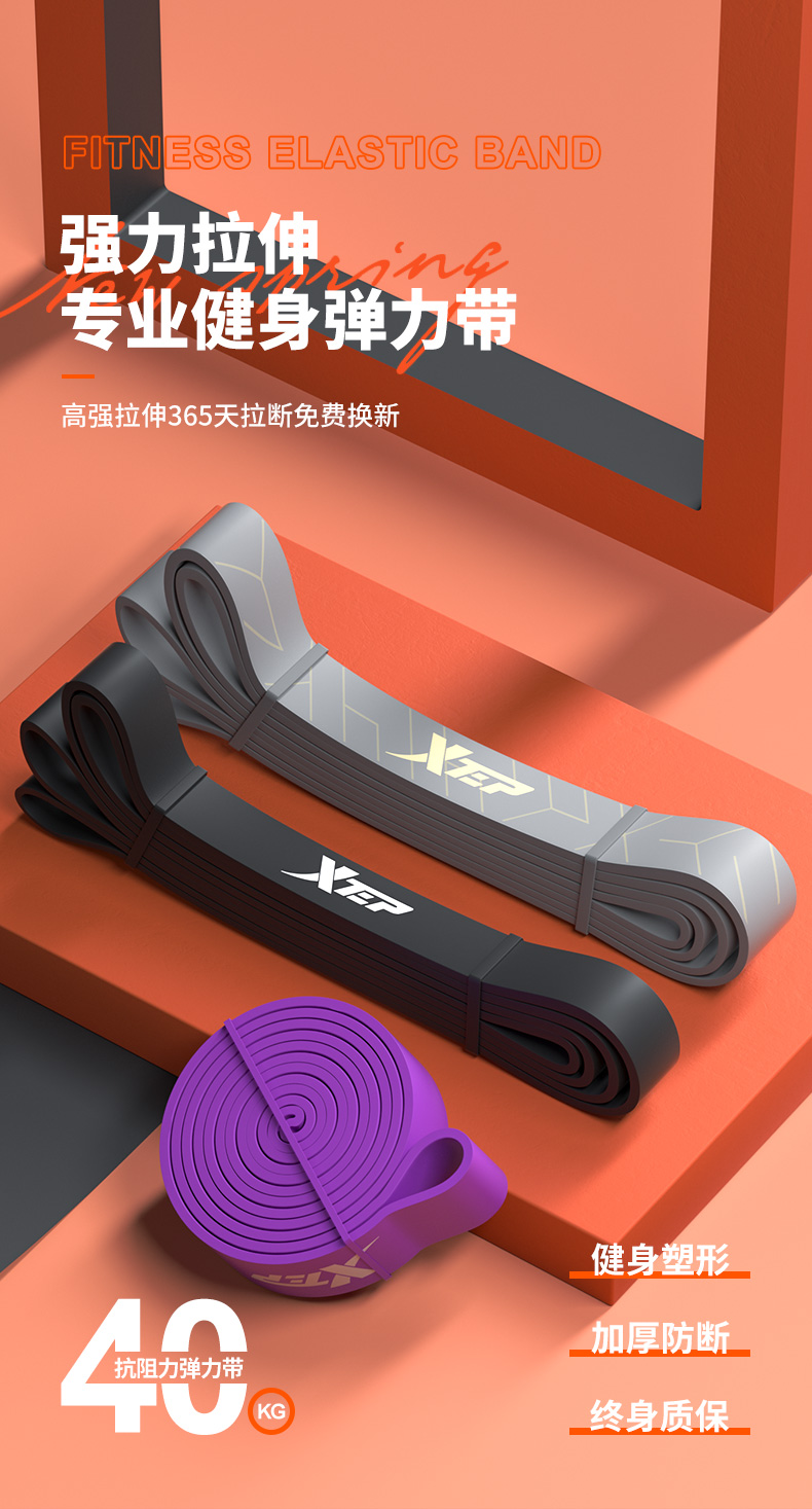 特步(XTEP)弹力带健身阻力拉伸带男女力量训练引体向上单杠辅助圈瑜伽练臀紫