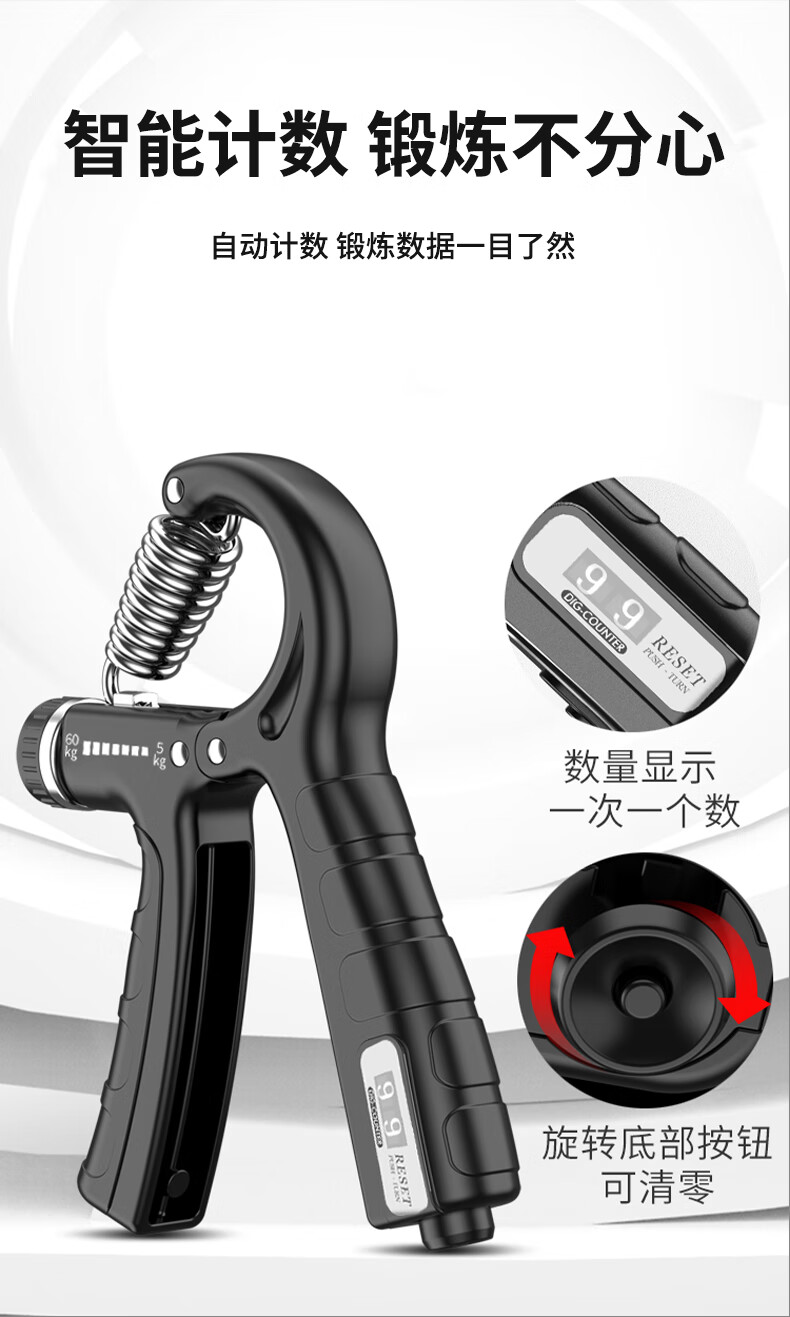 商品名称:魔法搭档计数健身锻炼手指臂力器肌肉腕力康复训练拉力器手指握力器 普通握力器无包胶黑色