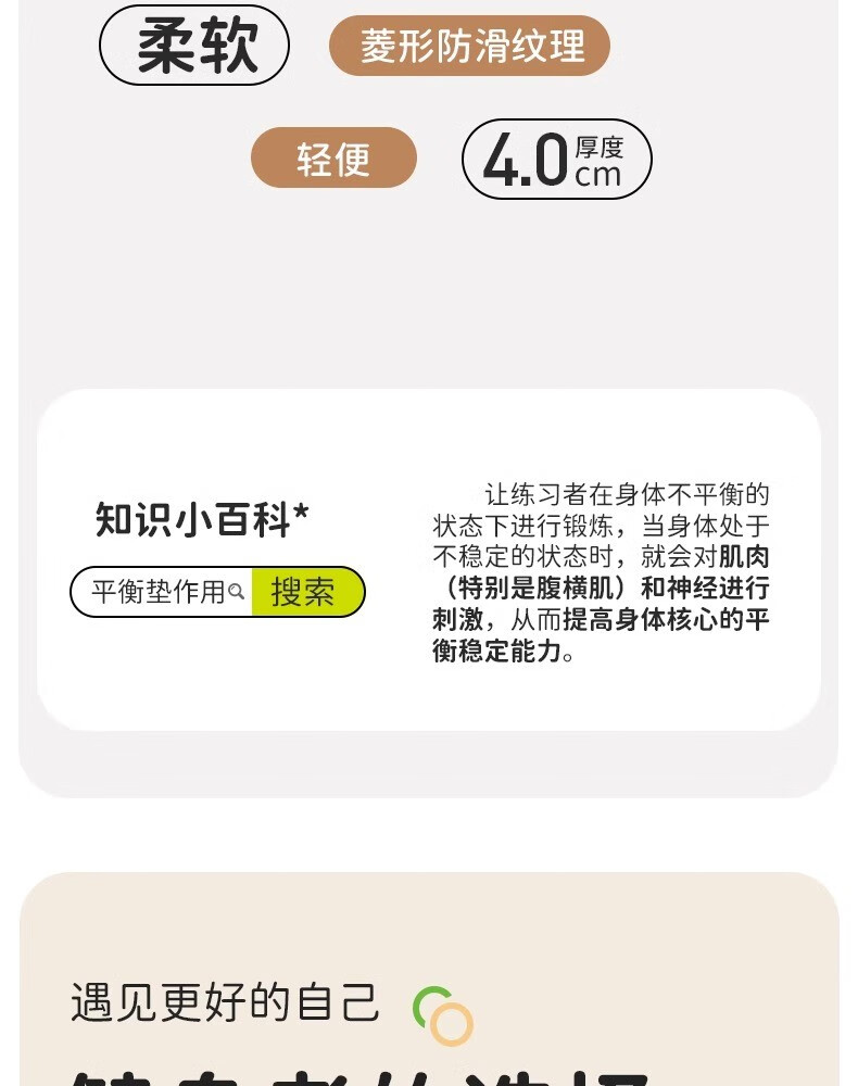 商品名称:悦步平衡软垫瑜伽平板支撑垫子加厚护肘垫膝健腹轮跪垫健身哑铃卧推垫 灰色 40*20*4cm